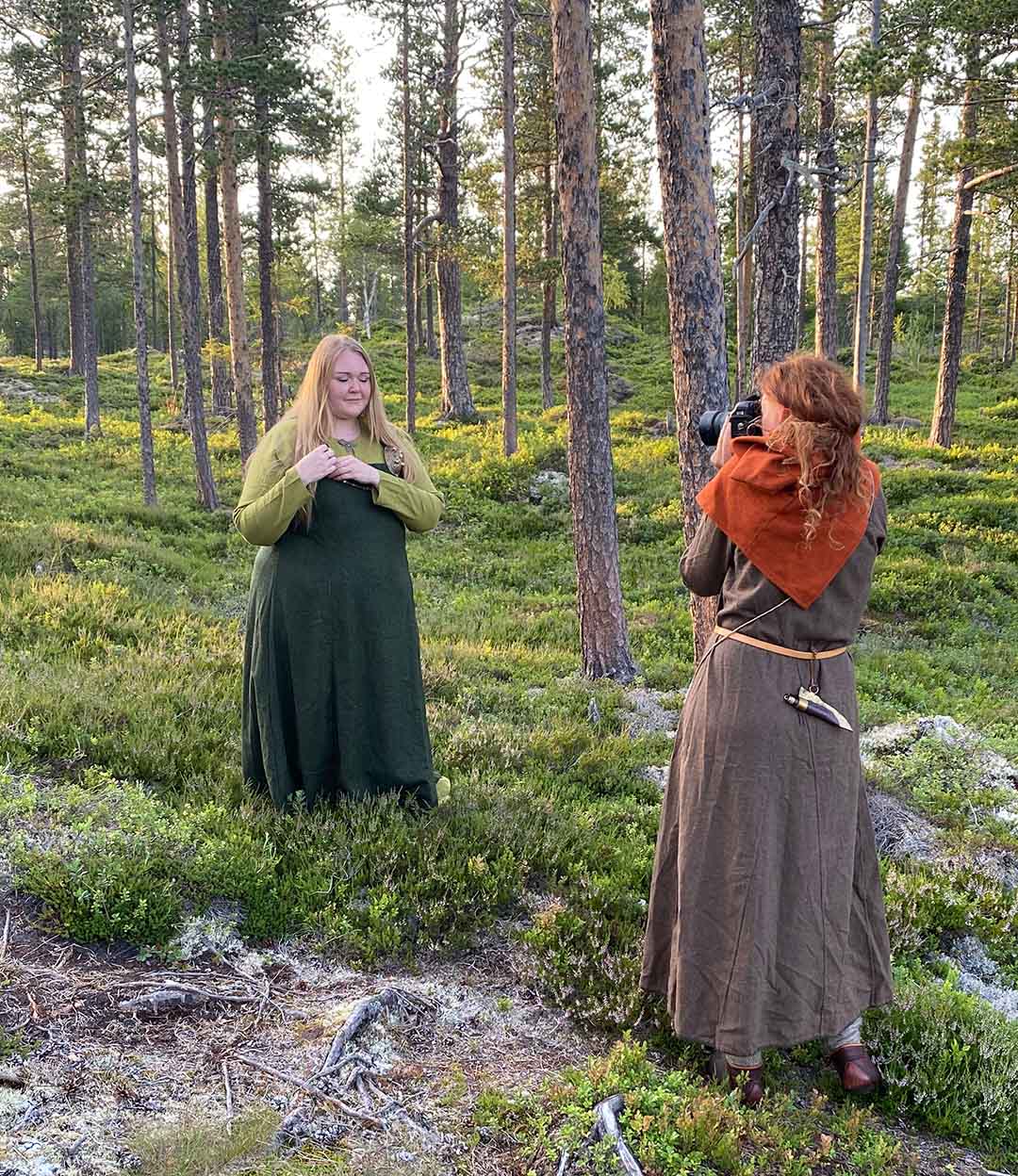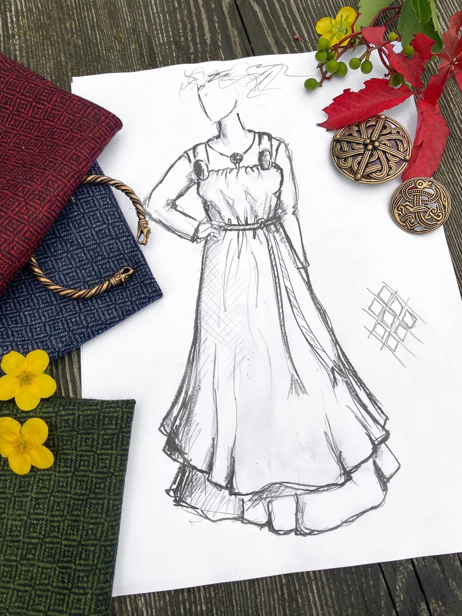 Alle vikingdraktene fra Klesarven er inspirert av gravfunn fra vikingtiden, der fragmenter av tekstiler, perler og smykker er bevart.