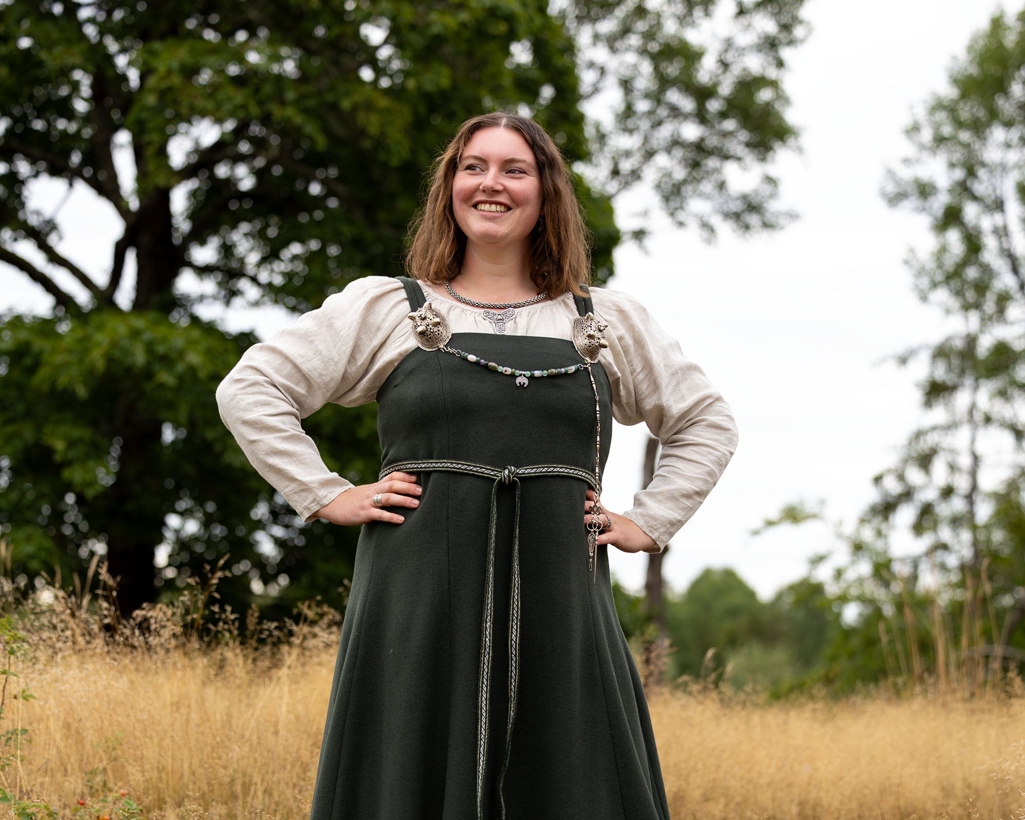 Tolkningene av disse funnene er grunnlaget for draktene våre. Passformen er justert til den moderne kvinnekroppen slik at vi kan føre standardstørrelser. Det er derfor alltid noen detaljer som ikke er autentiske, selvom klærne er vikingtids selekjoler og serker.