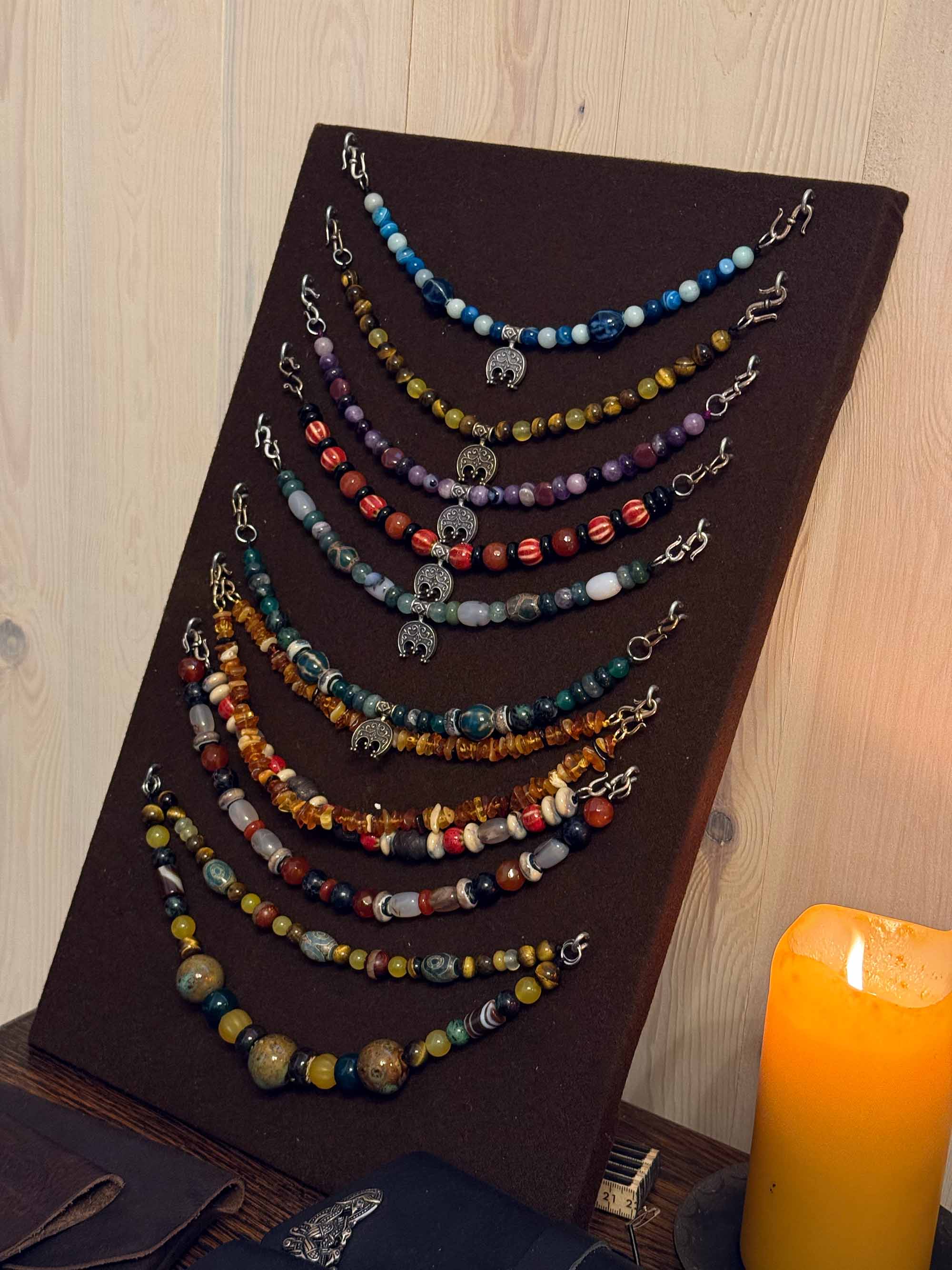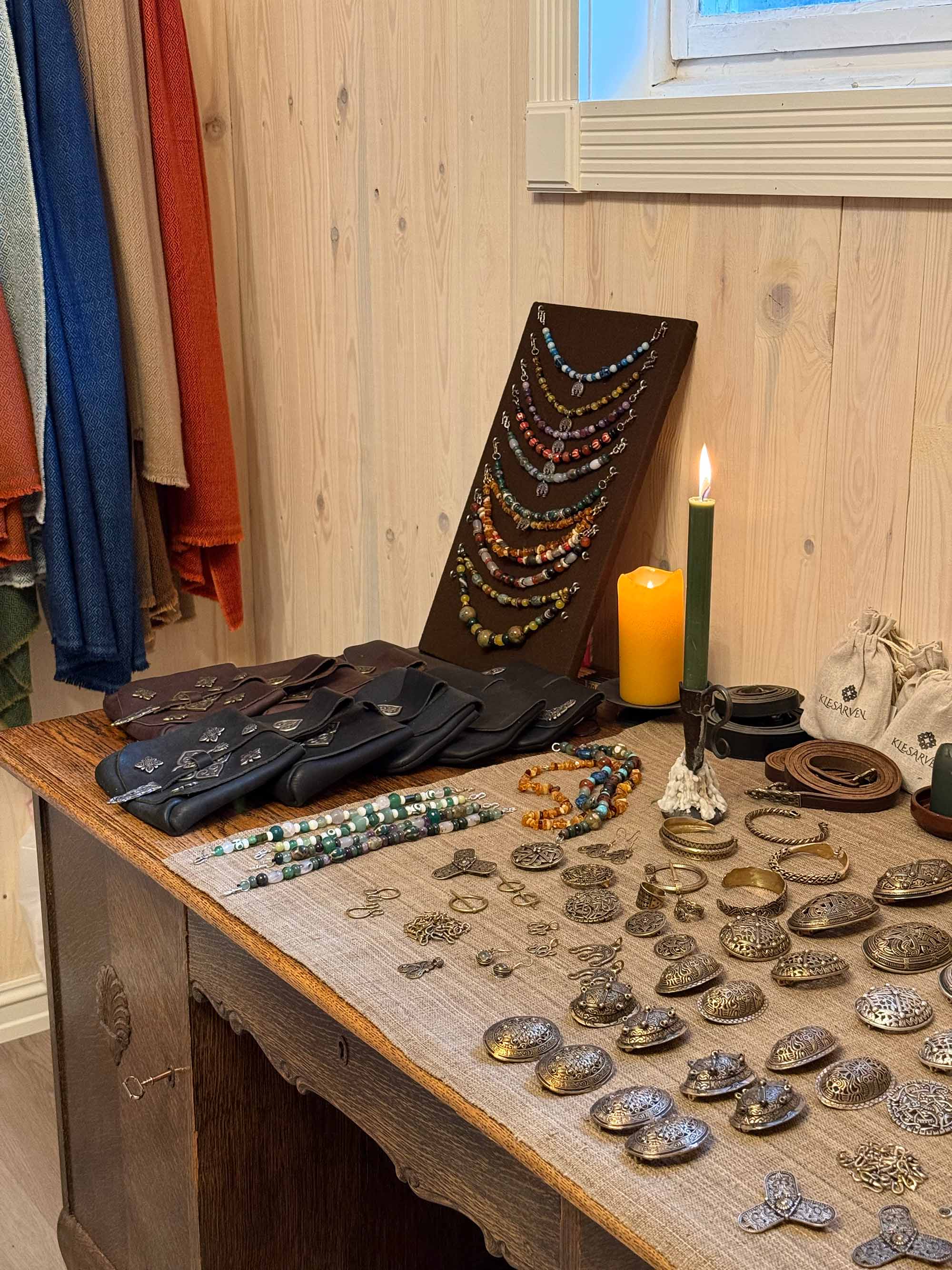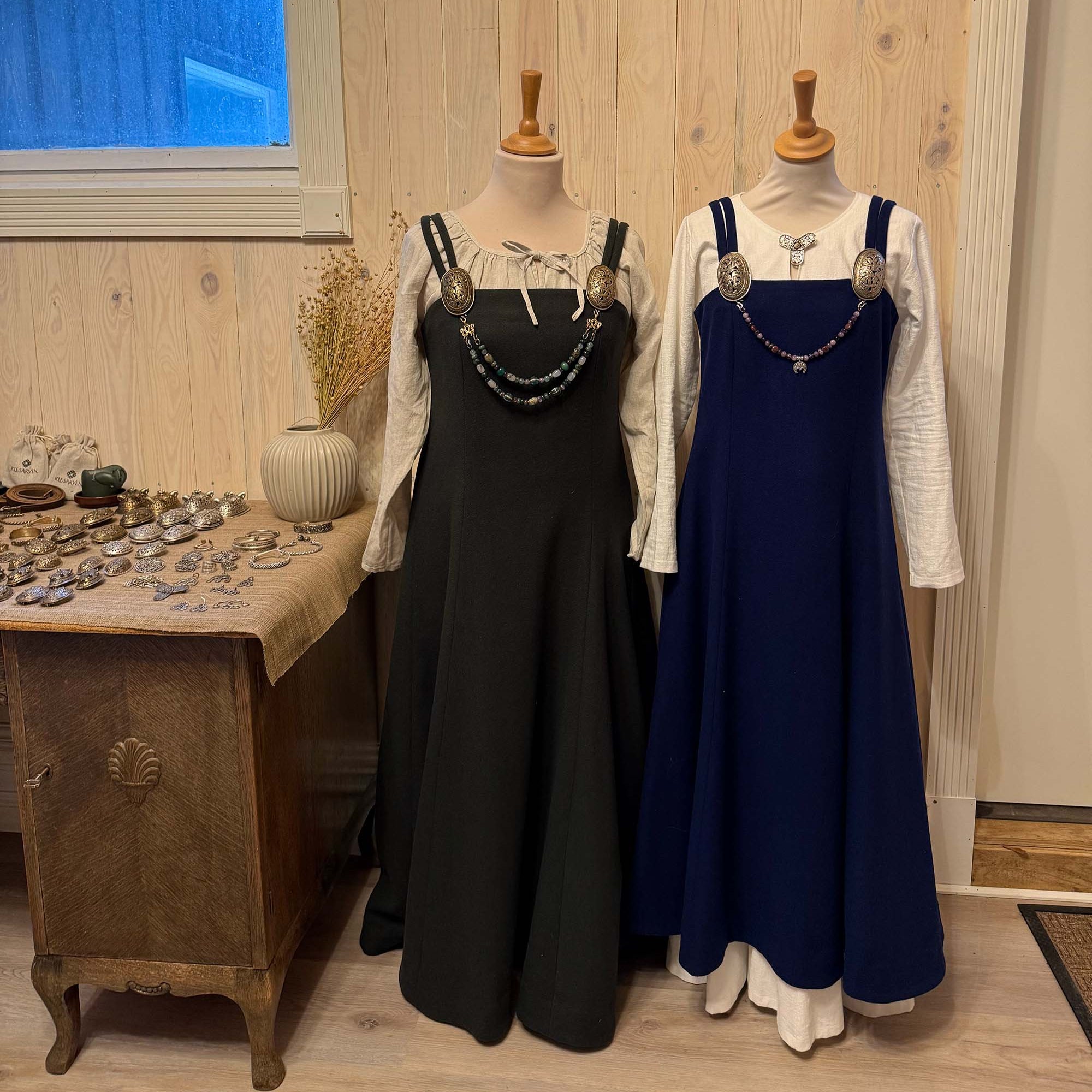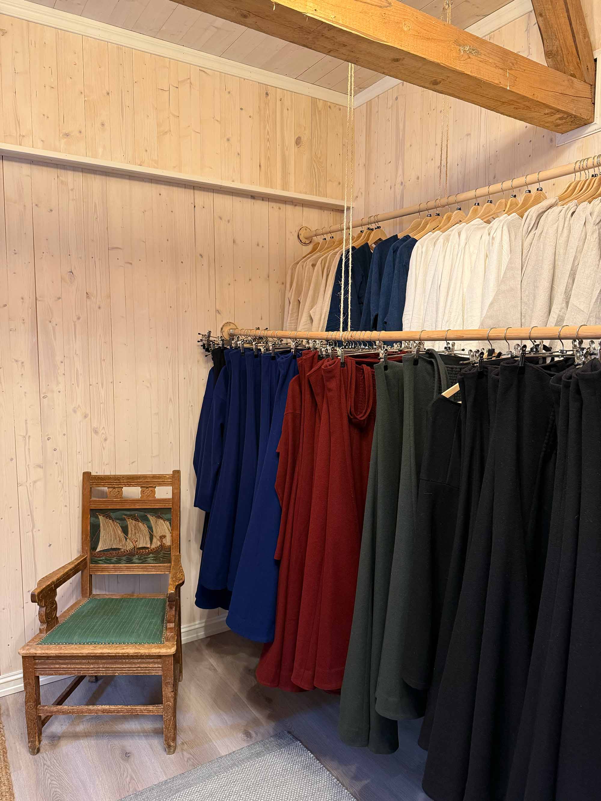 Til herre har vi kjortler i ull og lin, samt bukser i lin, i tillegg til alt tilbehør.